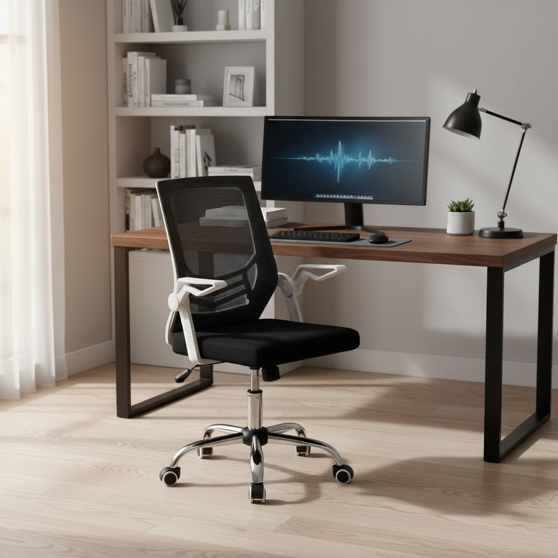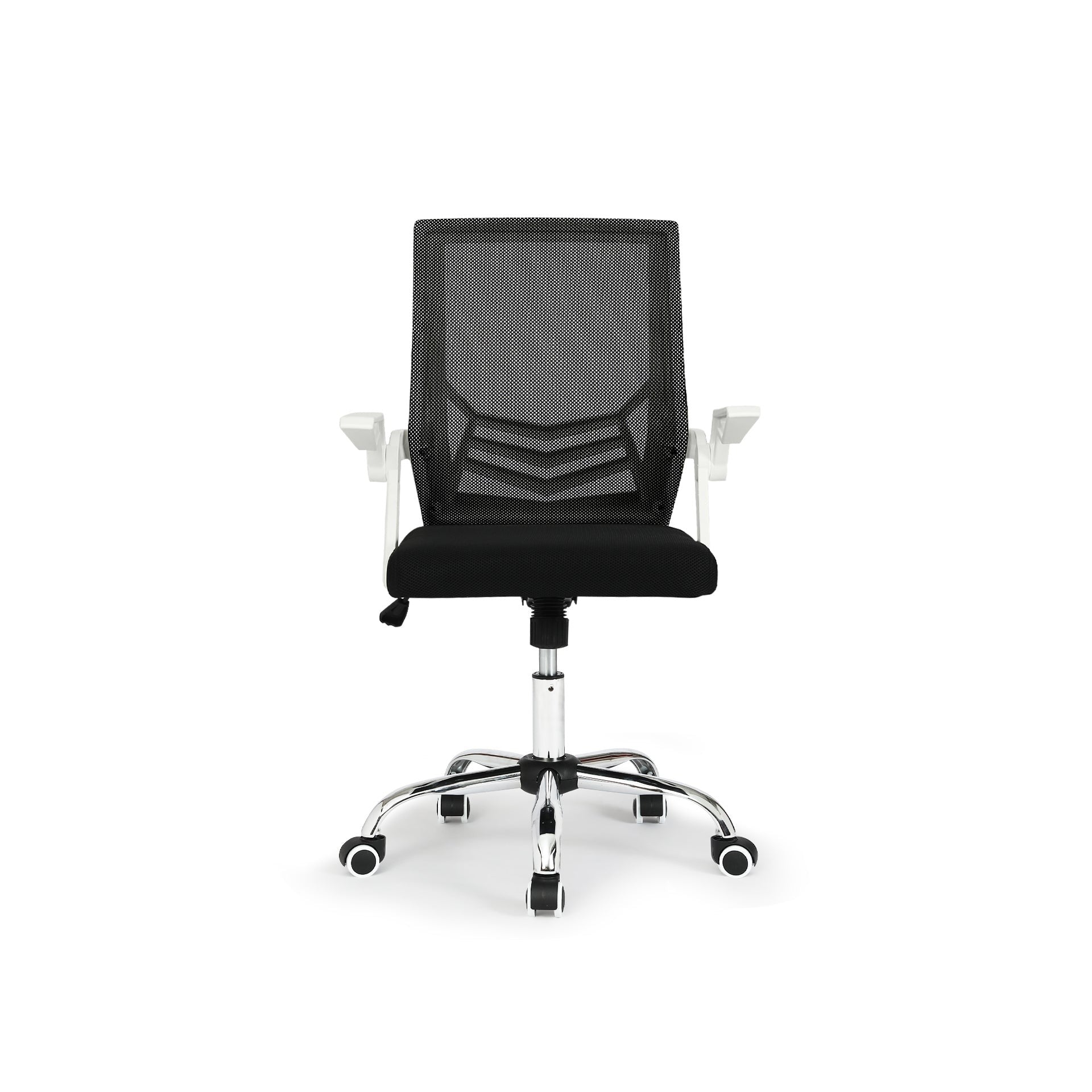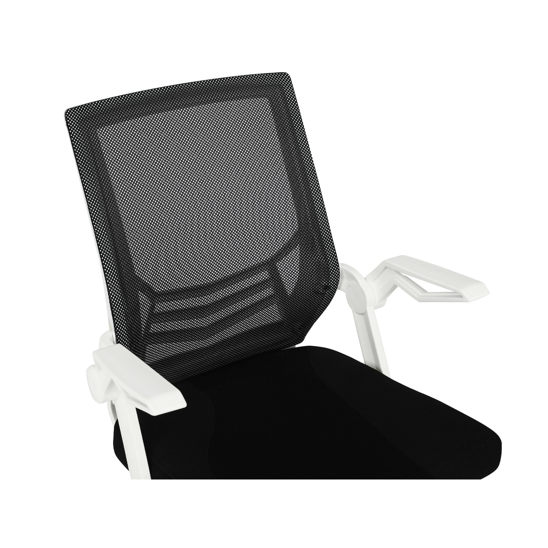 The office chair is designed with your comfort in mind, with a sturdy lumbar support and 90-degree flip-up armrests on both sides for optimal ergonomic support and efficient space utilization. With an adjustable height feature, it caters to your specific needs, ensuring the best sitting position.