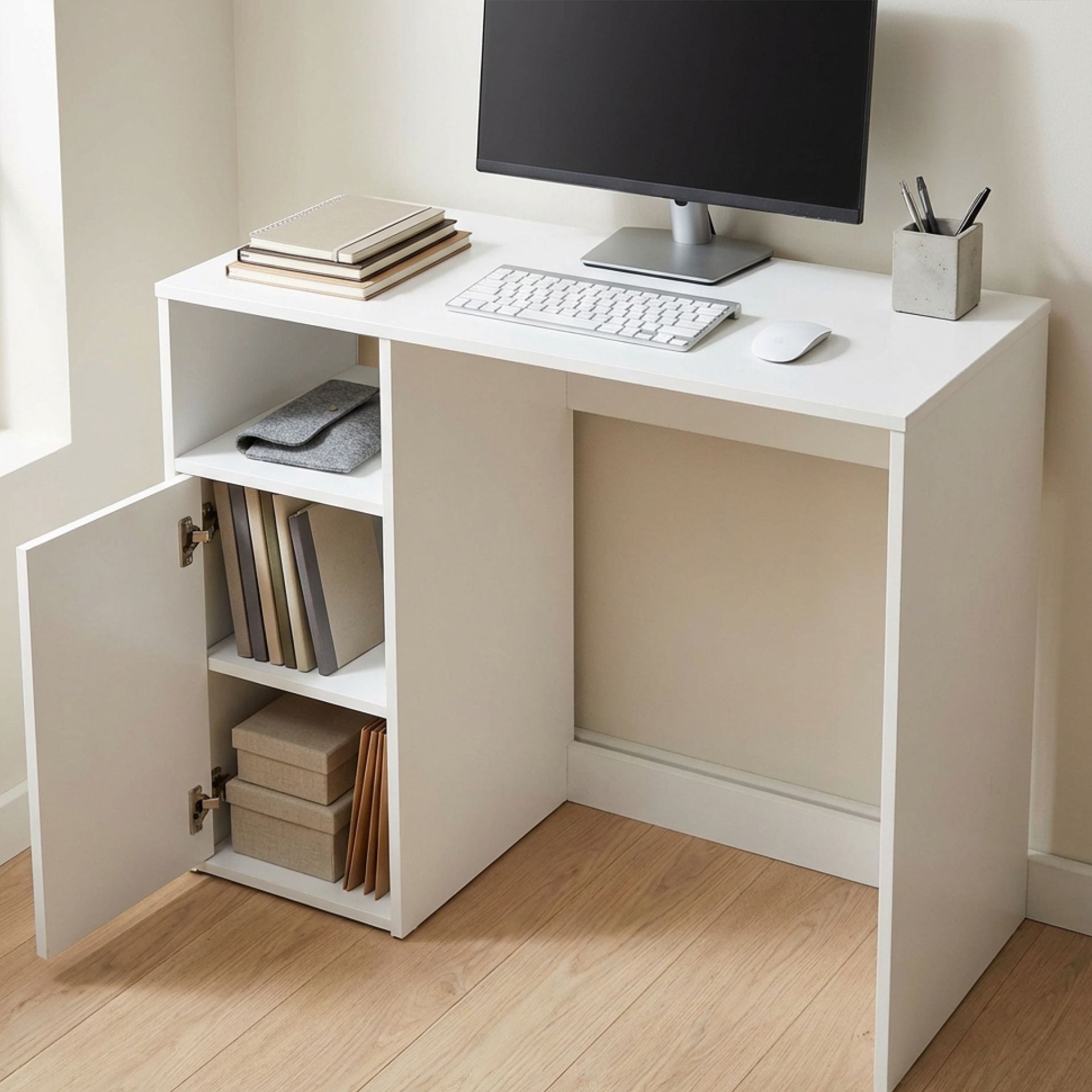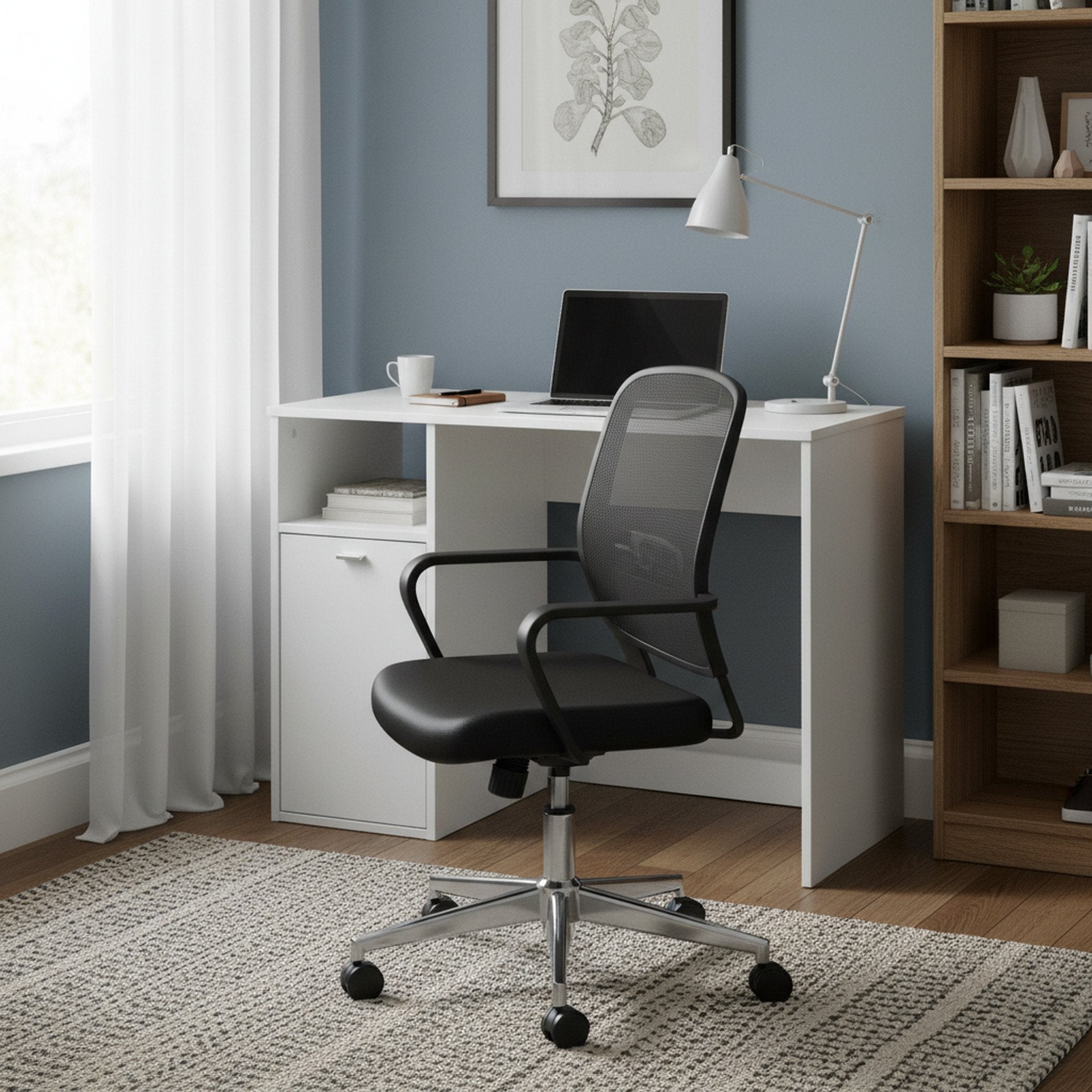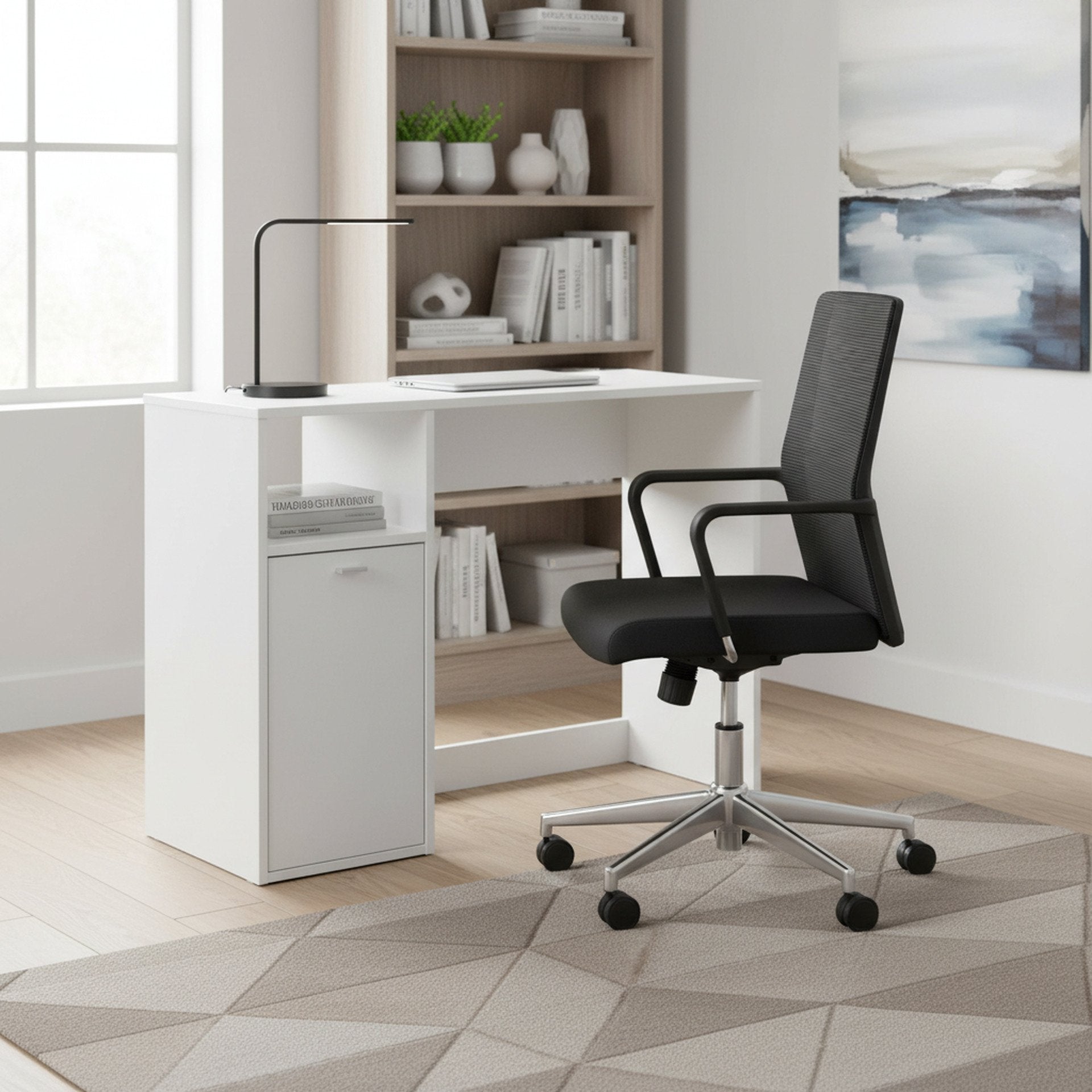 1 x MAKALU 100CM Computer Desk Study Desk with Cabinet - WHITE