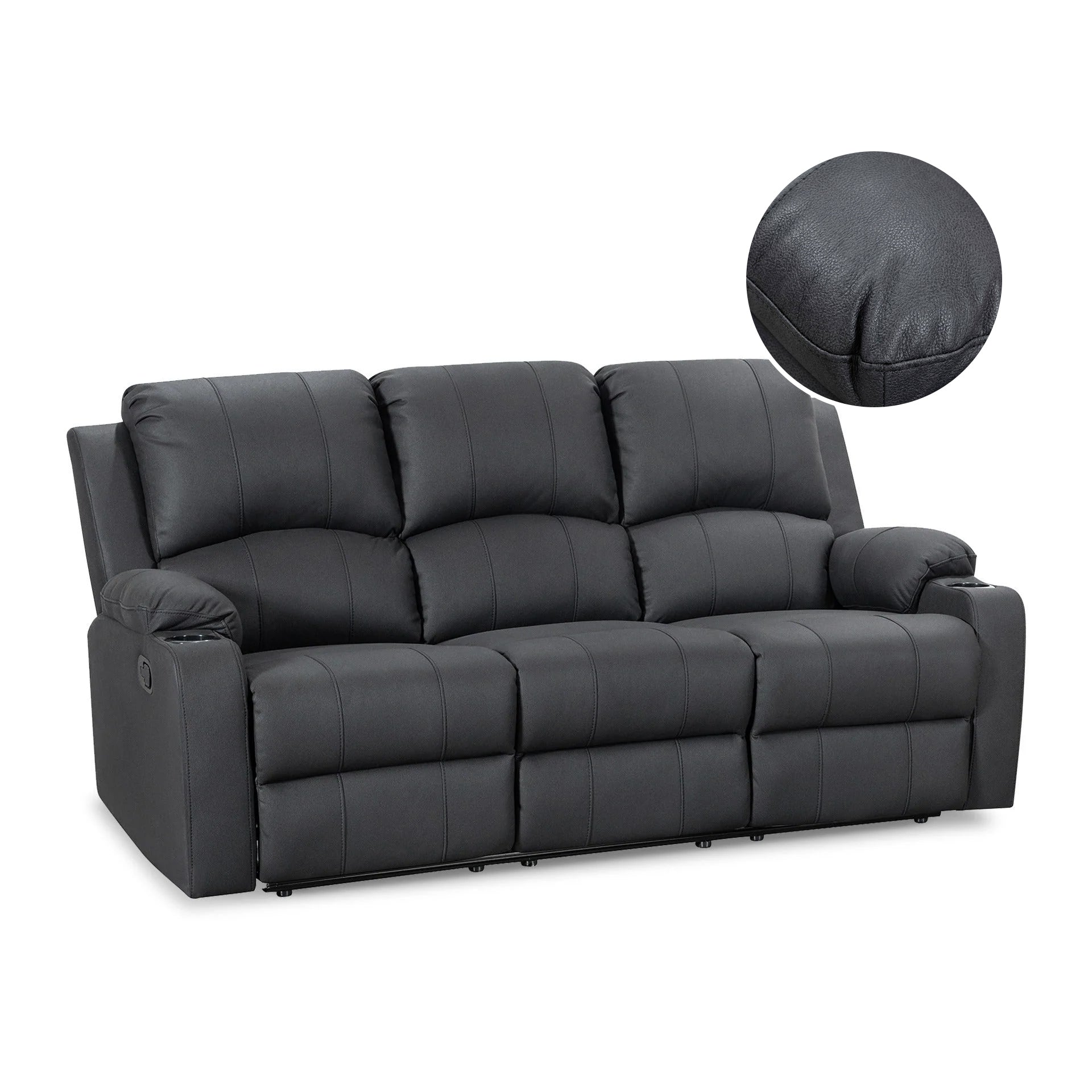 1 x Marton Manual 3 Seater Recliner Sofa - Black
