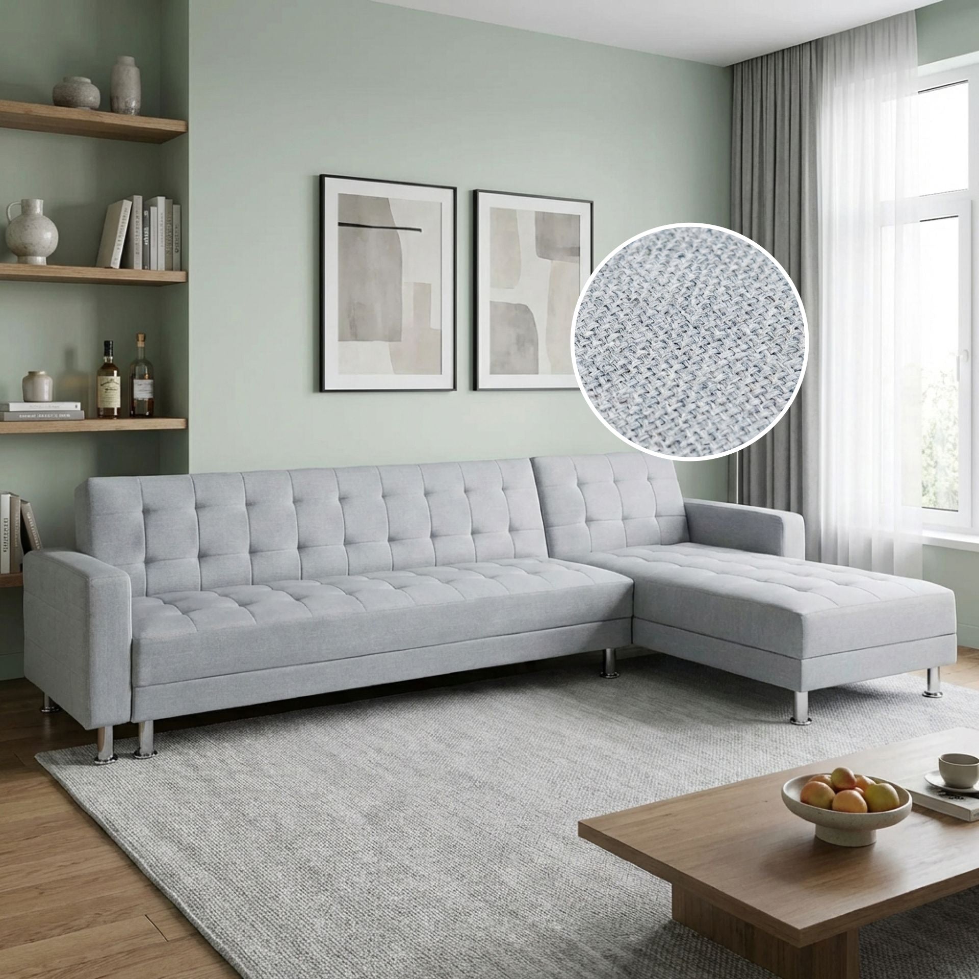 It is quite a versatile sofa bed that you could arrange into different configurations depending on your individual preferences. Use it as a sofa with or without a chaise lounge, place the chaise part on left or right, or just simply fold it down to have an instant bed for sleepovers.