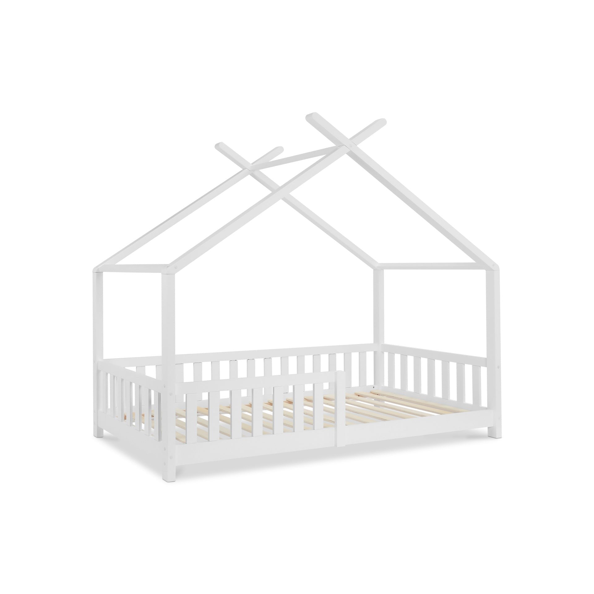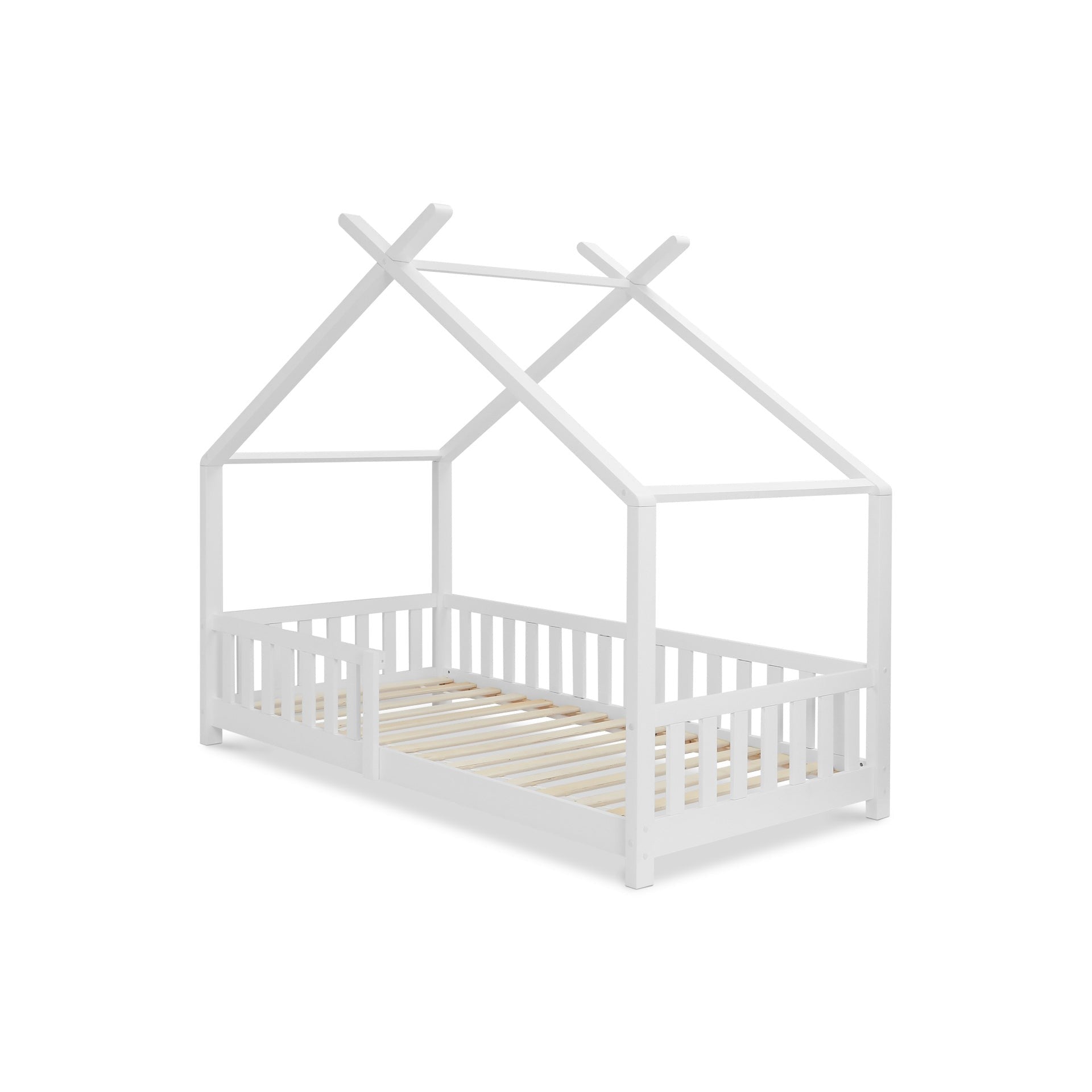 Crafted from high-quality pine wood with sturdy slats, this single bed offers long-term stability and durability. Its house-like frame design, in a neutral palette, seamlessly complements your child's room decor. The low bed base design ensures easy access and prevents accidental falls.