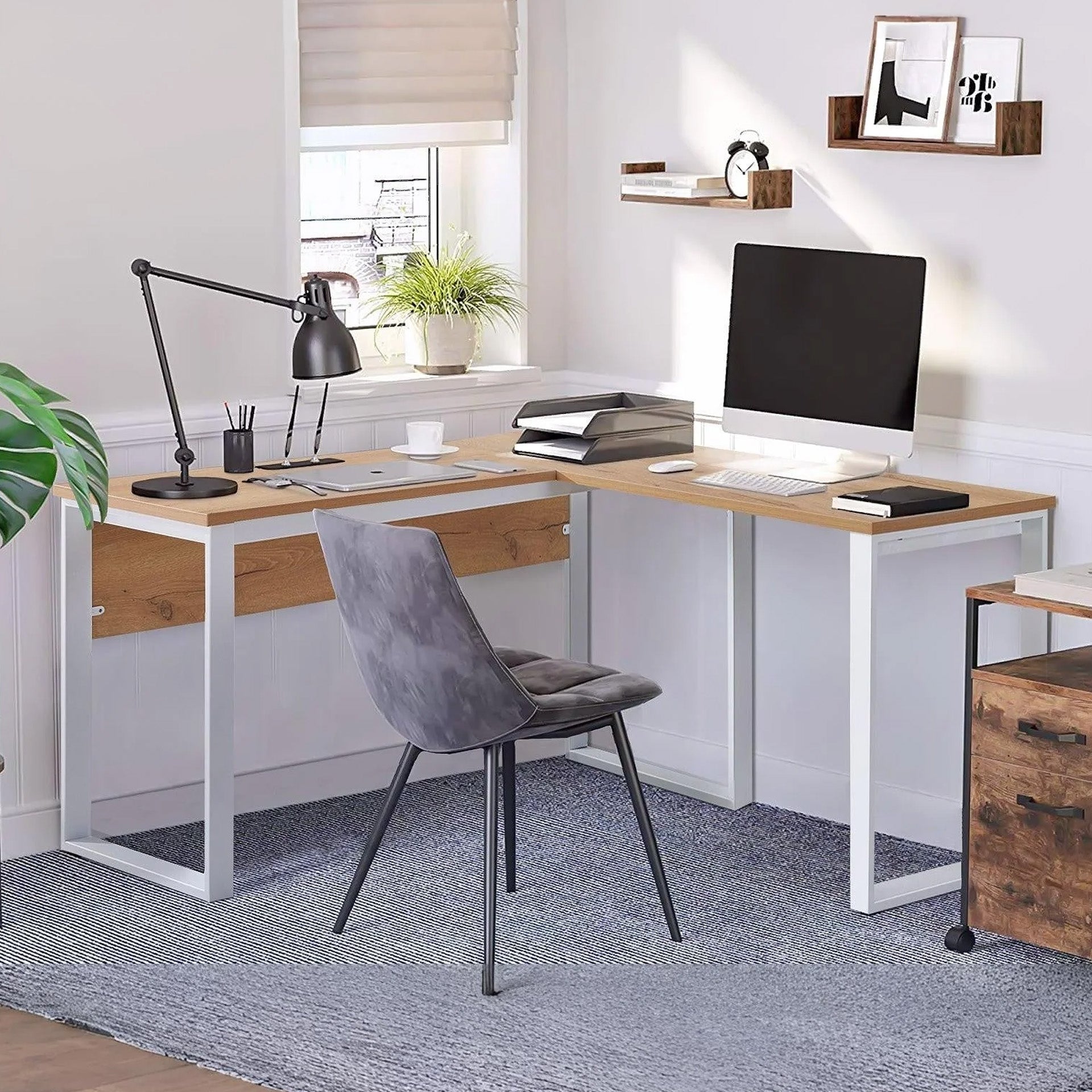 With an L-shaped design, this NAKIA Computer Corner Desk provides you with more convenience and space for work or study, it will become a practical addition in your living space and can be easily placed in the corner of the space. The computer desk offers a spacious tabletop, allowing you to place printer, laptop or other office supplies, and the strong structure ensures its capacity. Besides, the durable powder-coated metal frame provides structural strength with an attractive open design, bringing a simple and beautiful contemporary appearance to your work space, and giving you ample space for stretching, while the sturdy frame guarantees the stability of the entire computer desk. If you are looking for a filing cabinet as extra storage space, we also have a NAKIA 3 Drawer Filing Cabinet with the same element design, which perfectly match this computer desk and help you keep your documents and supplies at hand.