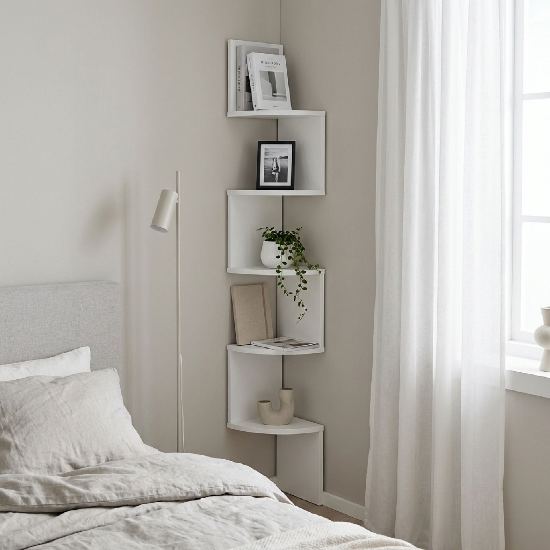 1 x NEMI Corner Shelf - 5 Tiers Corner Shelf Wall Shelf - WHITE