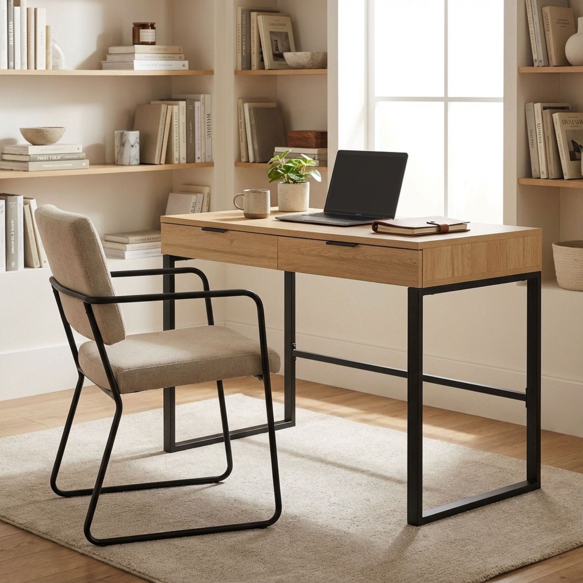 This OCALA Computer Desk is one of our OCALA range products which will be a perfect addition to your living room and suits any modern or rustic décor perfectly. Made of high quality MDF board with black metal accents, this computer desk is sturdy and durable that allows you to place printer and laptop; features large tabletop to place your study materials and books; come with 2 drawers allowing extra storage space for all your office needs; while the black alloy handles and smooth drawers with metal runners make it a pleasure to use.