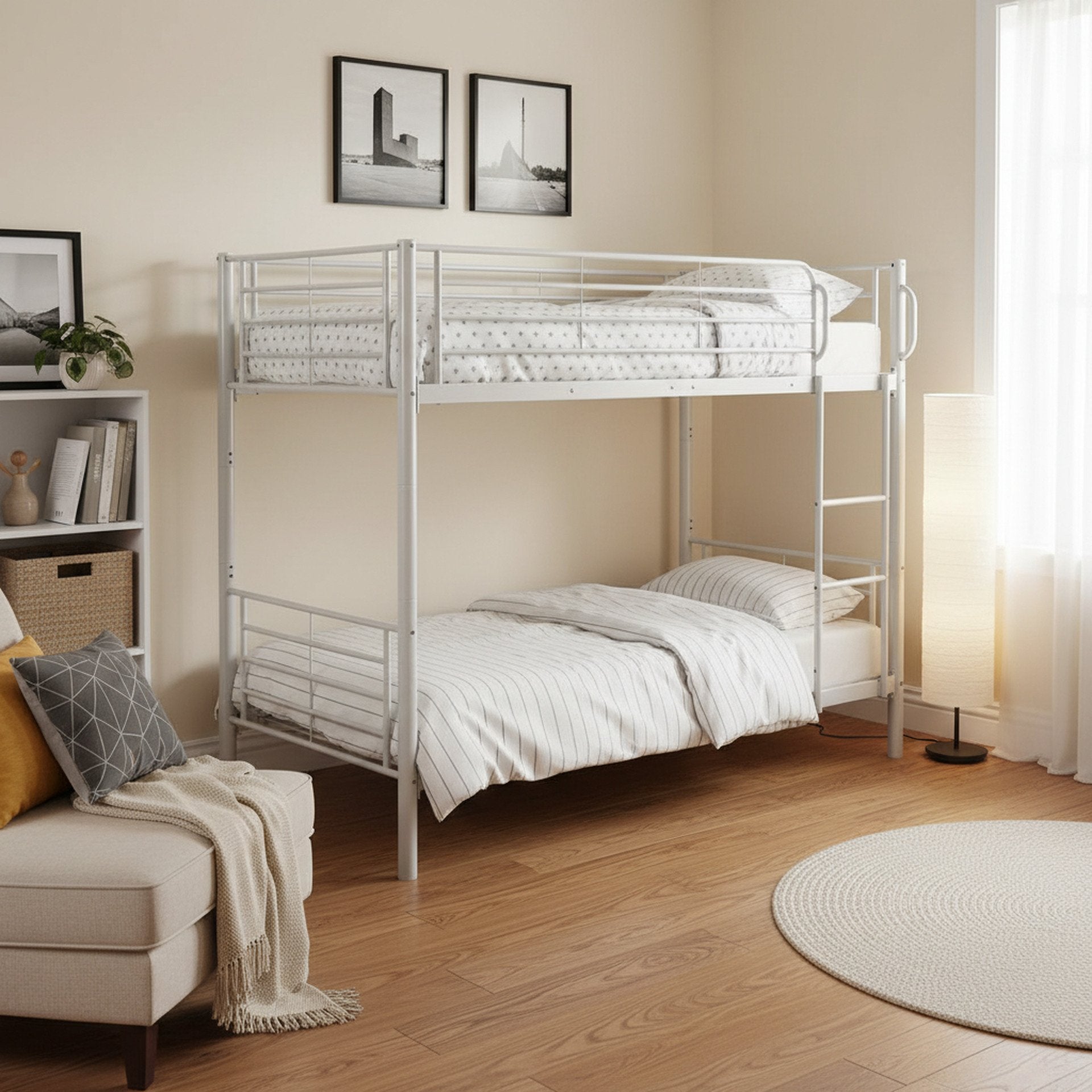 Owen Single Metal Bunk Bed Frame - White