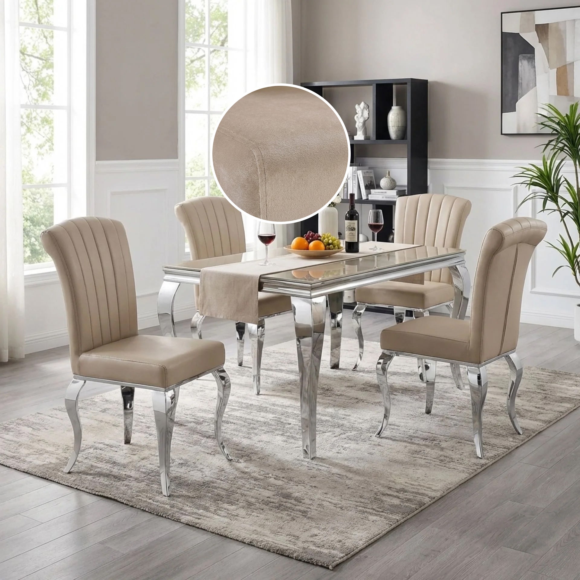 1 x Raven Velvet Dining Chairs - Set of 4 - Light Brown