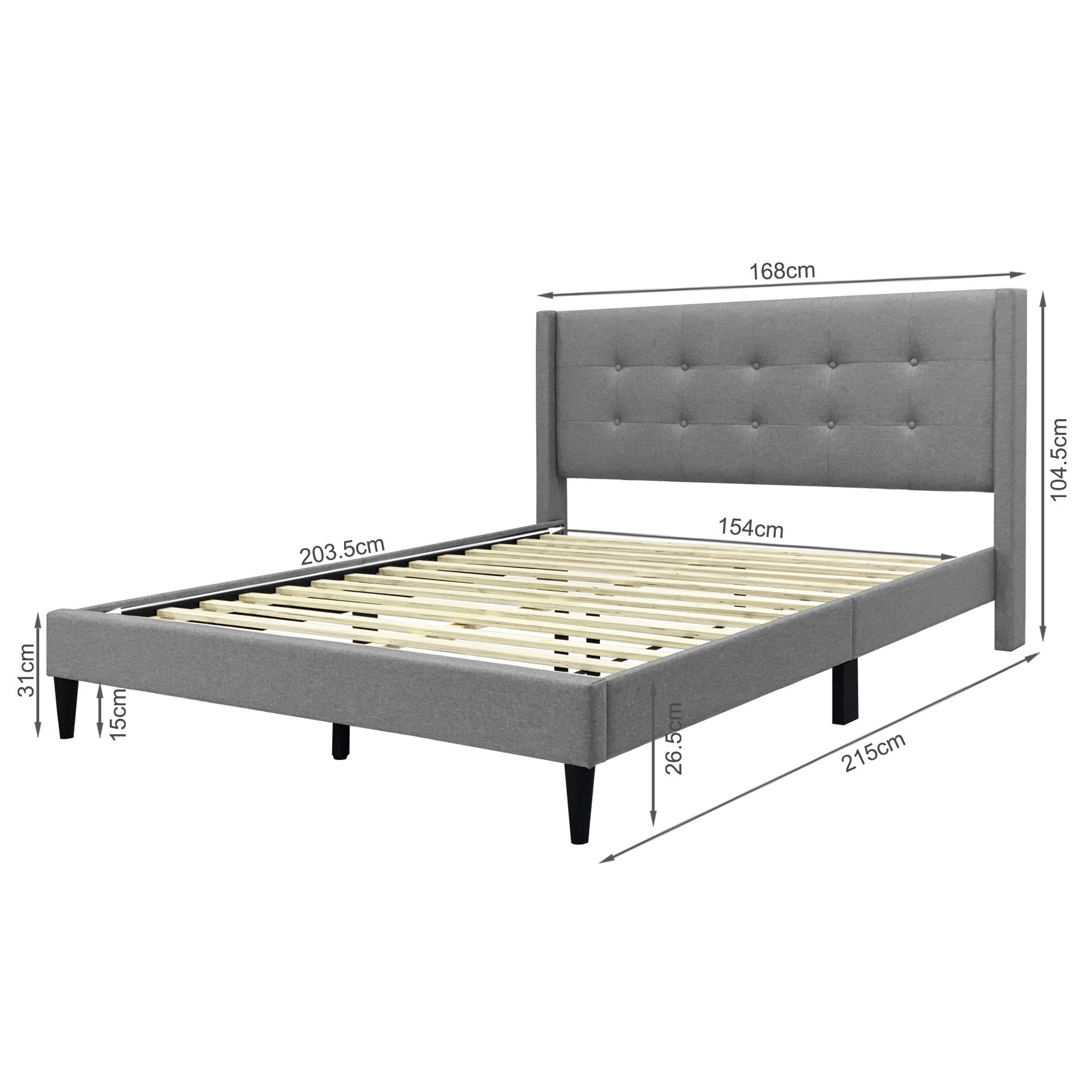 - Headboard Dimensions (W x H): 168cm x 104.5cm