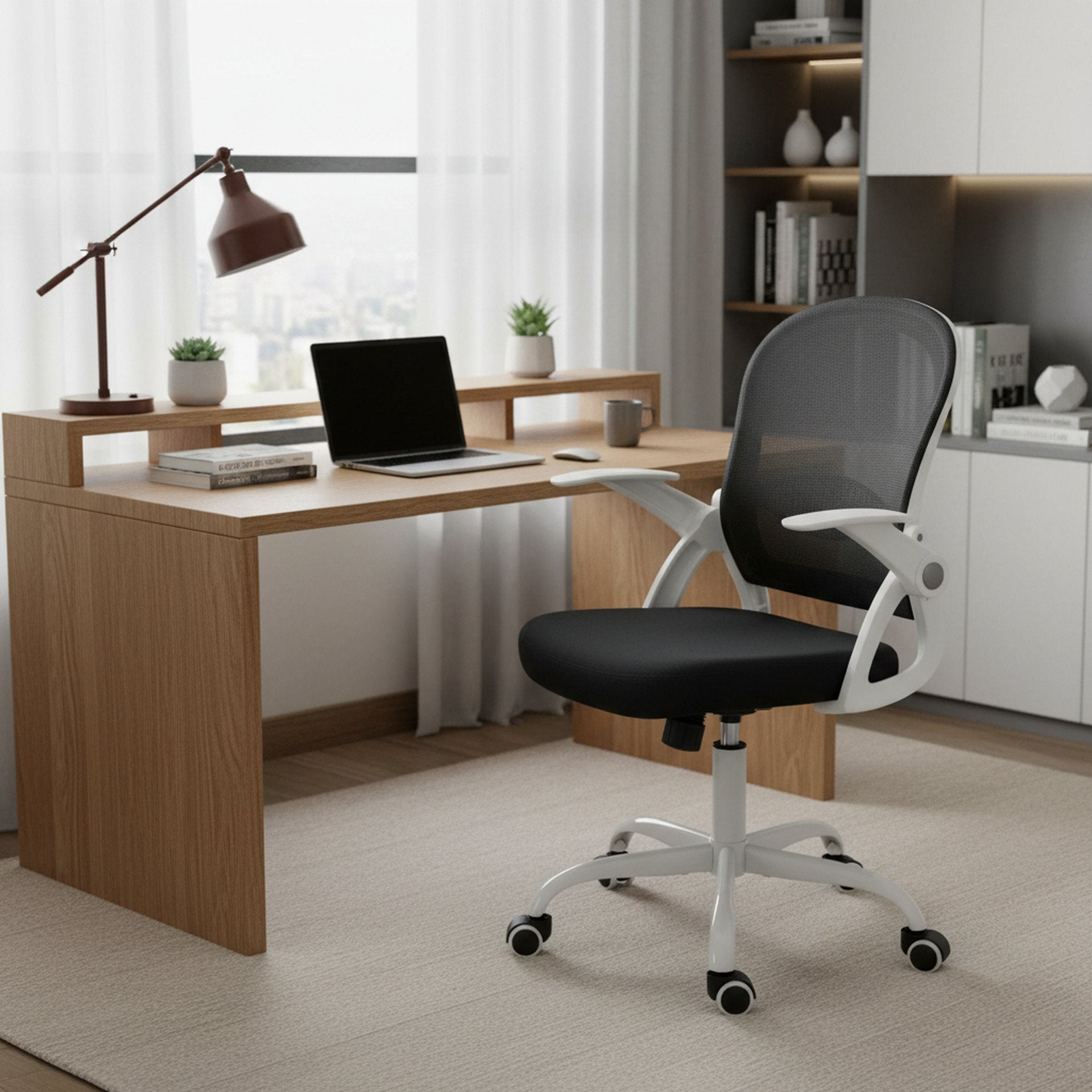 Enhance your workspace with our premium office chair, designed to provide both style and comfort. Featuring a sleek and versatile black mesh fabric, this chair adds a modern touch to any office or home office setting.