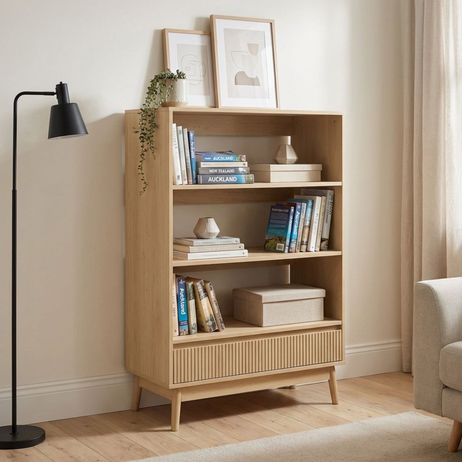 1 x Shawnee 3 Tier Bookshelf with Drawer - Oak