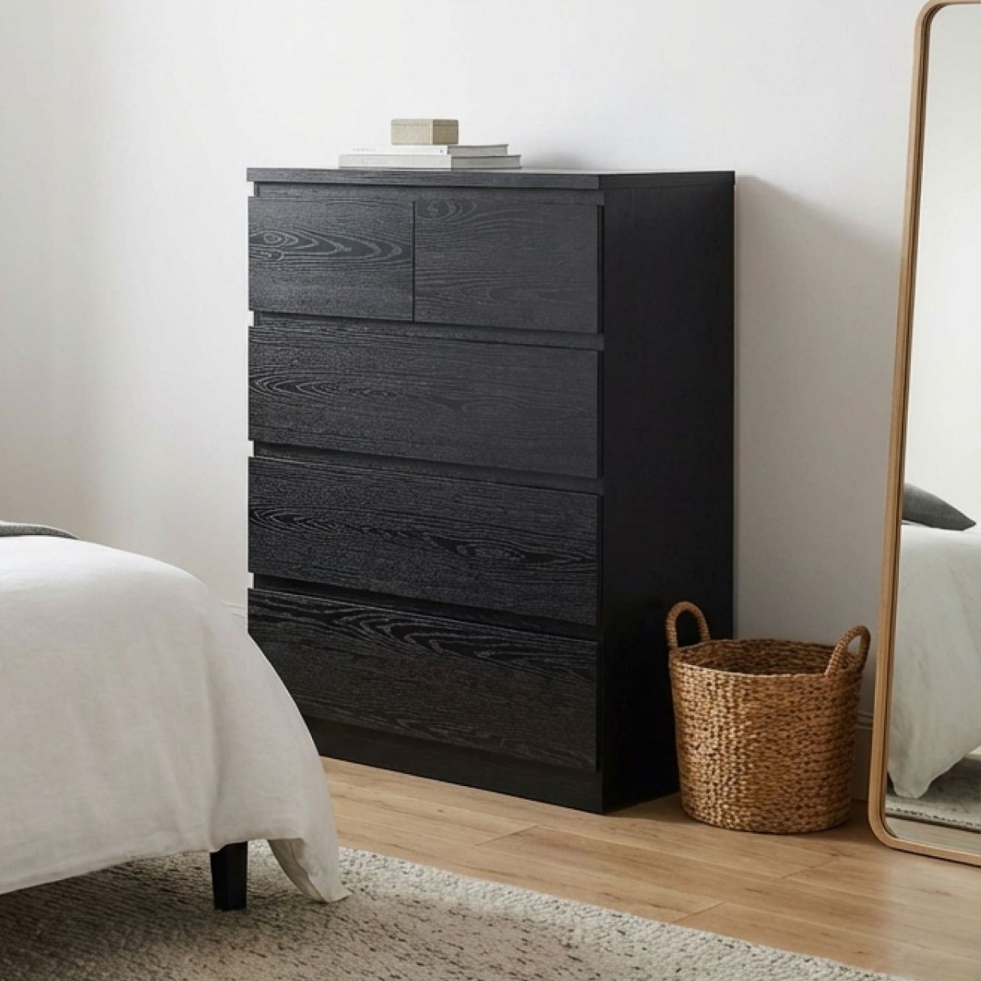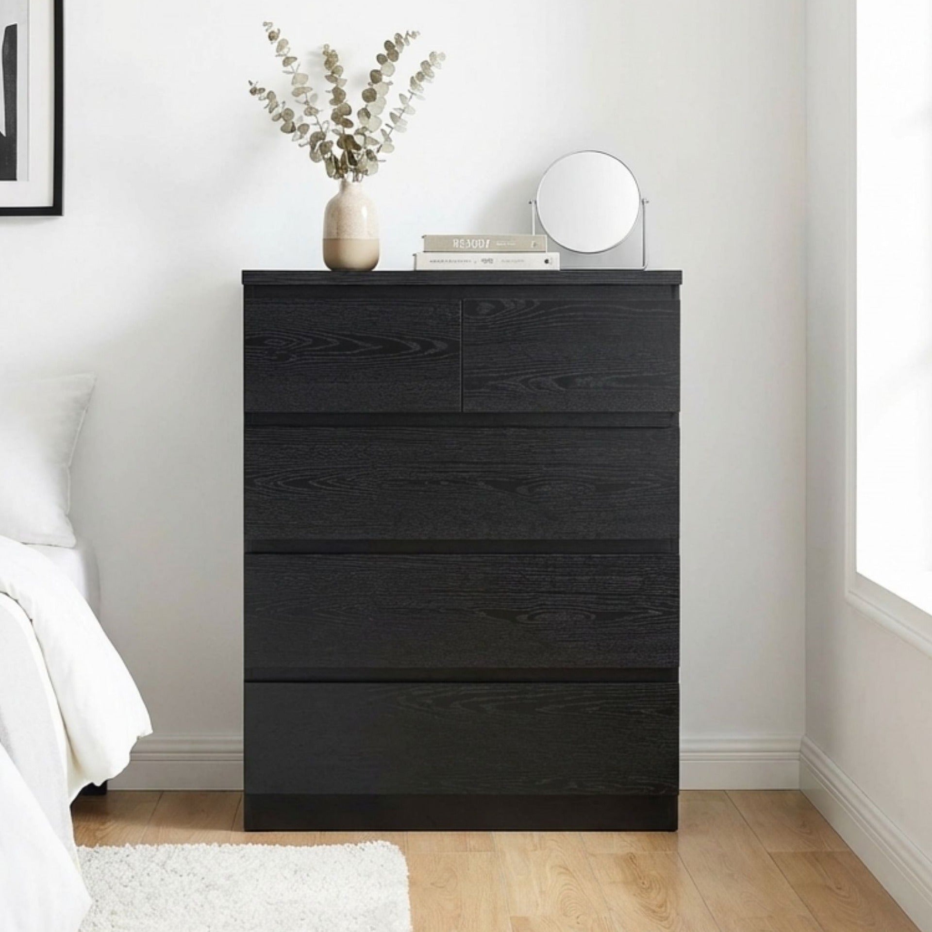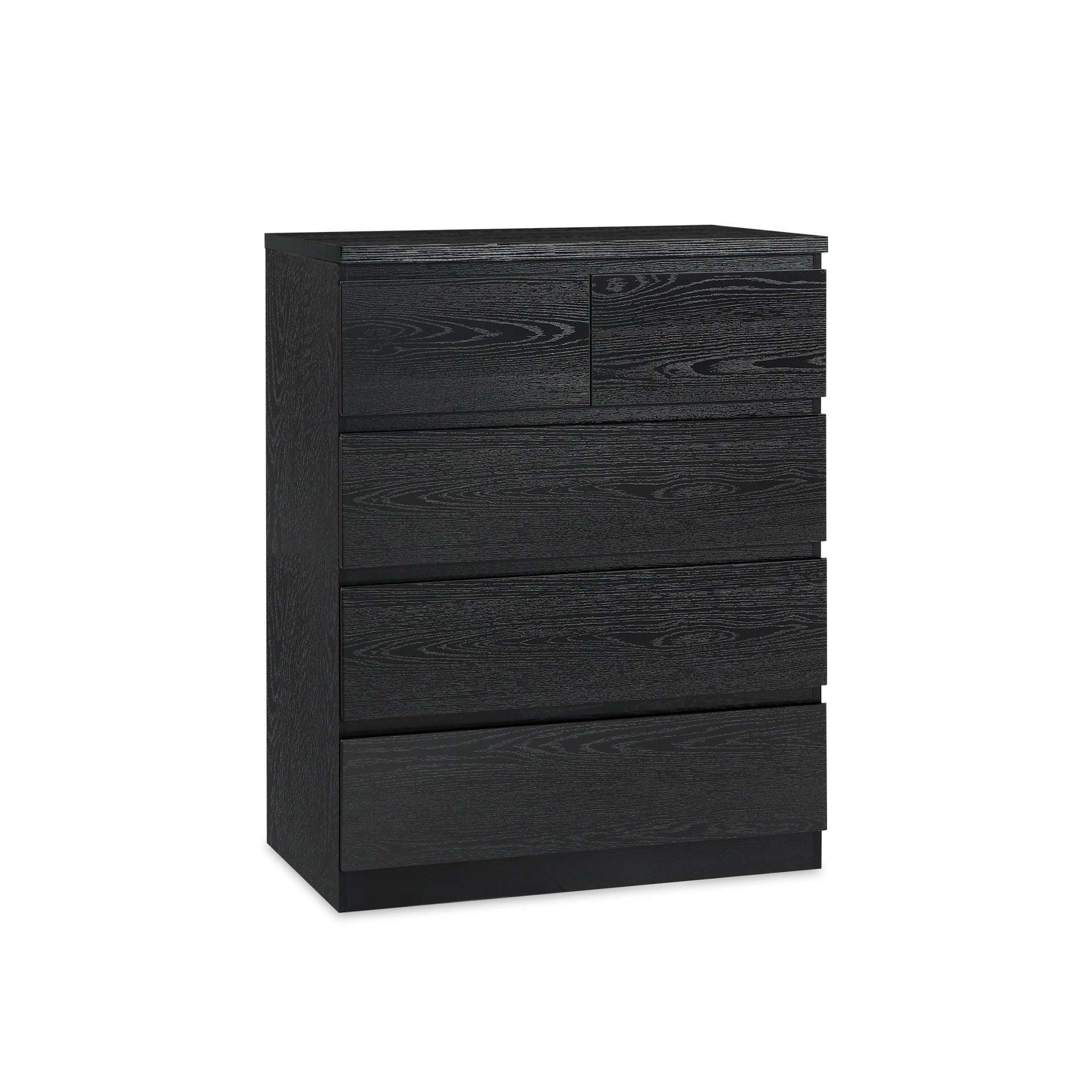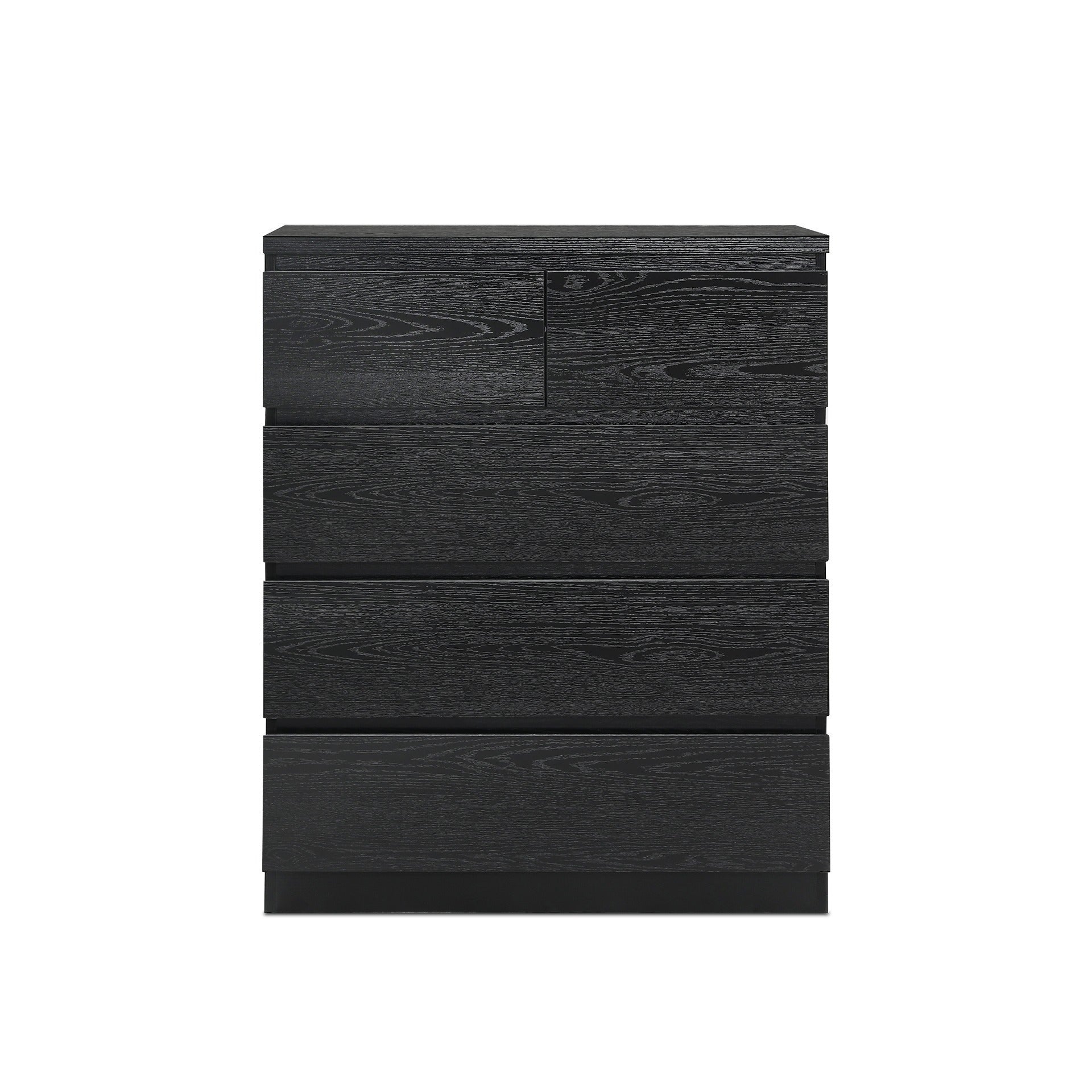1 x Tongass Wooden 5 Drawers Tallboy - Black