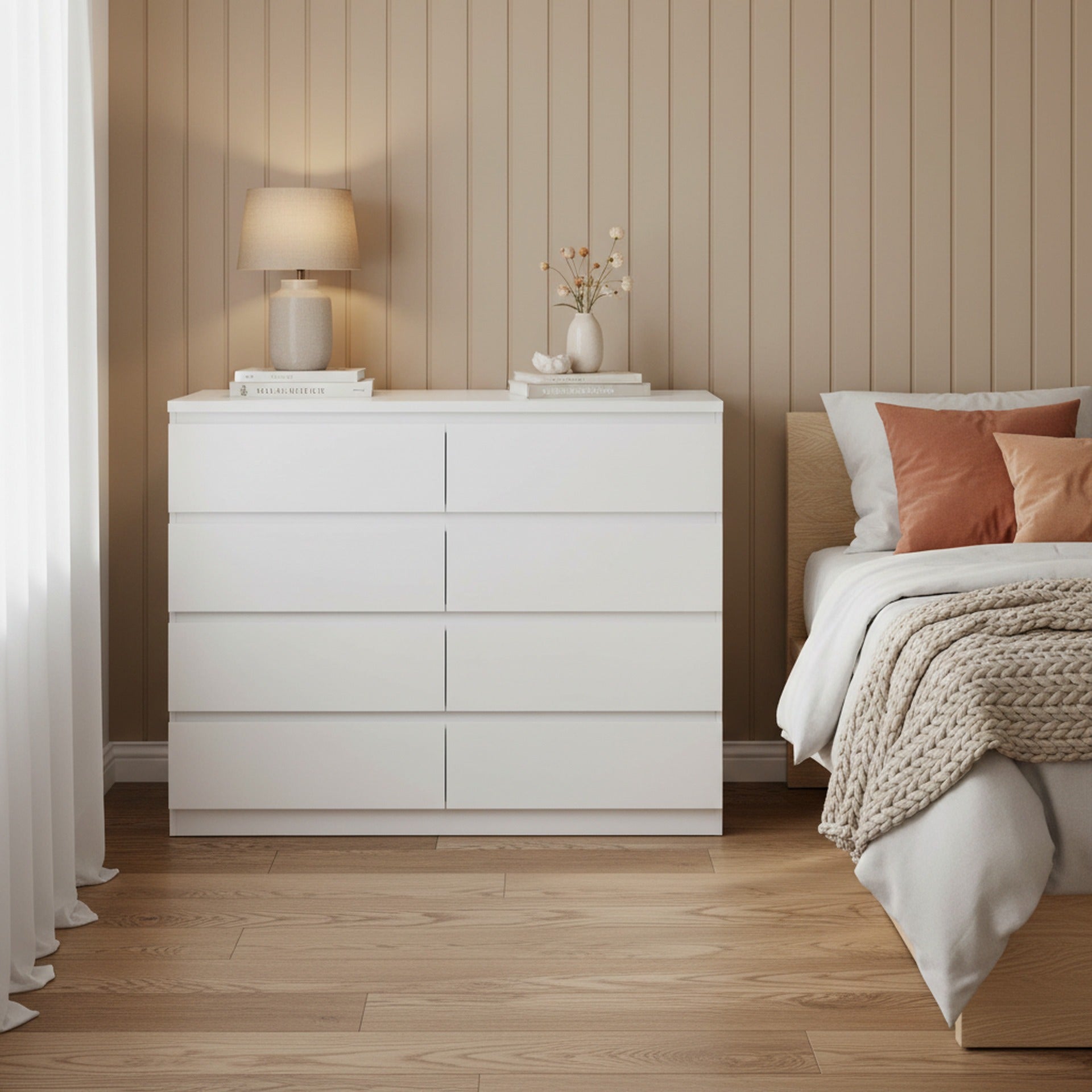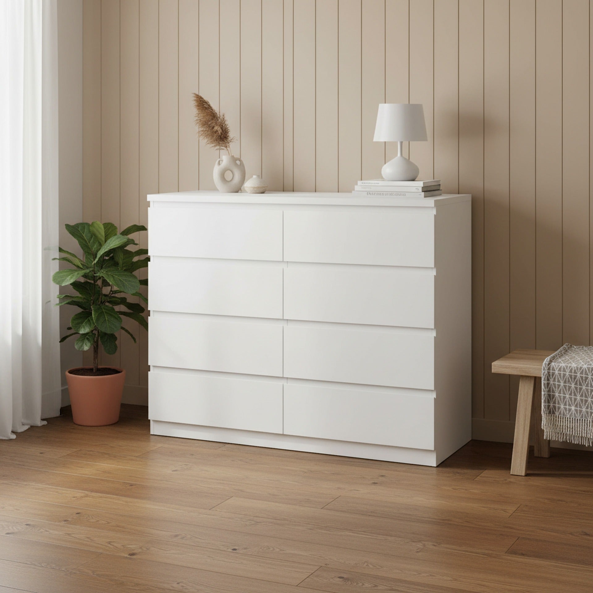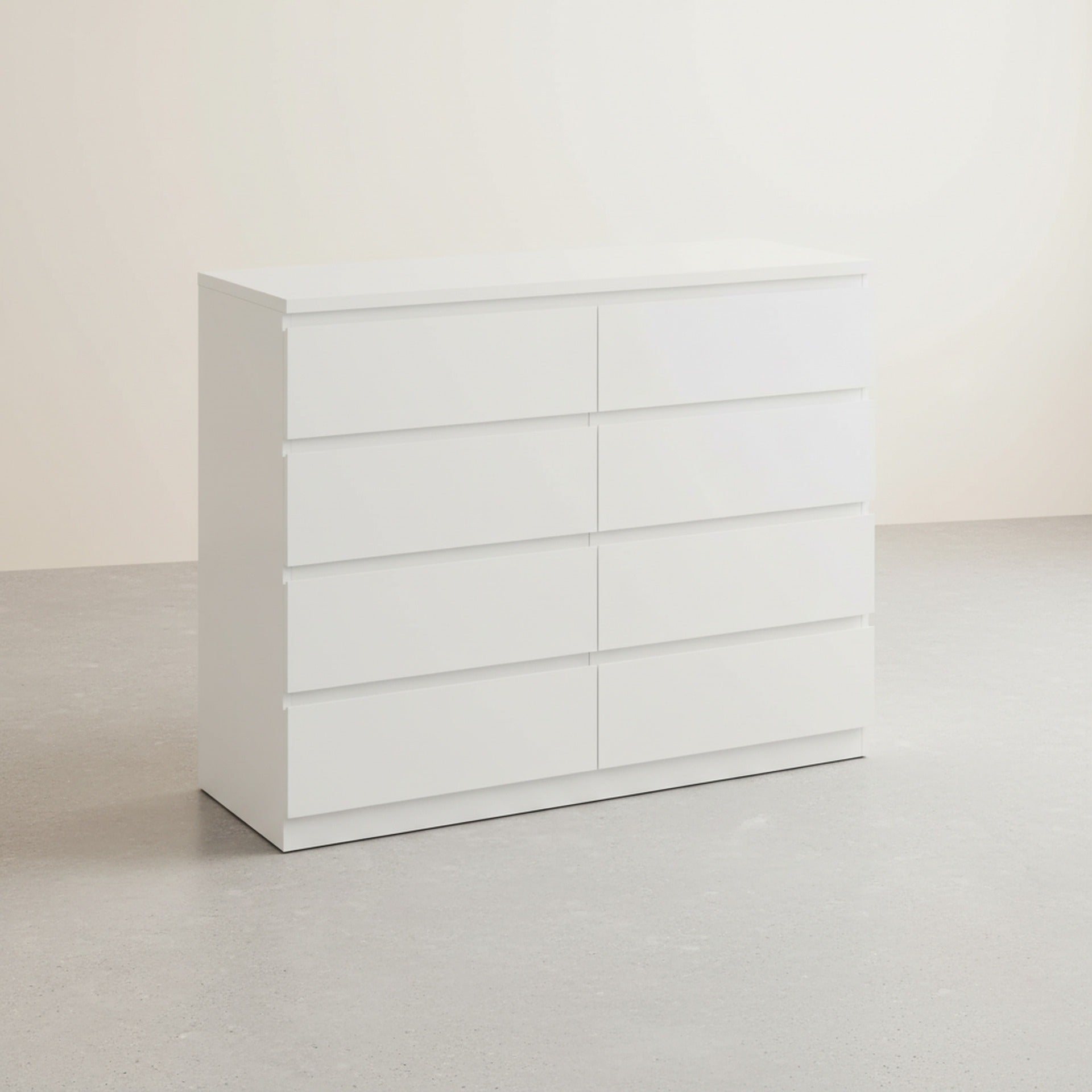 1 x TONGASS Wooden Low Boy 8 Drawers - WHITE
