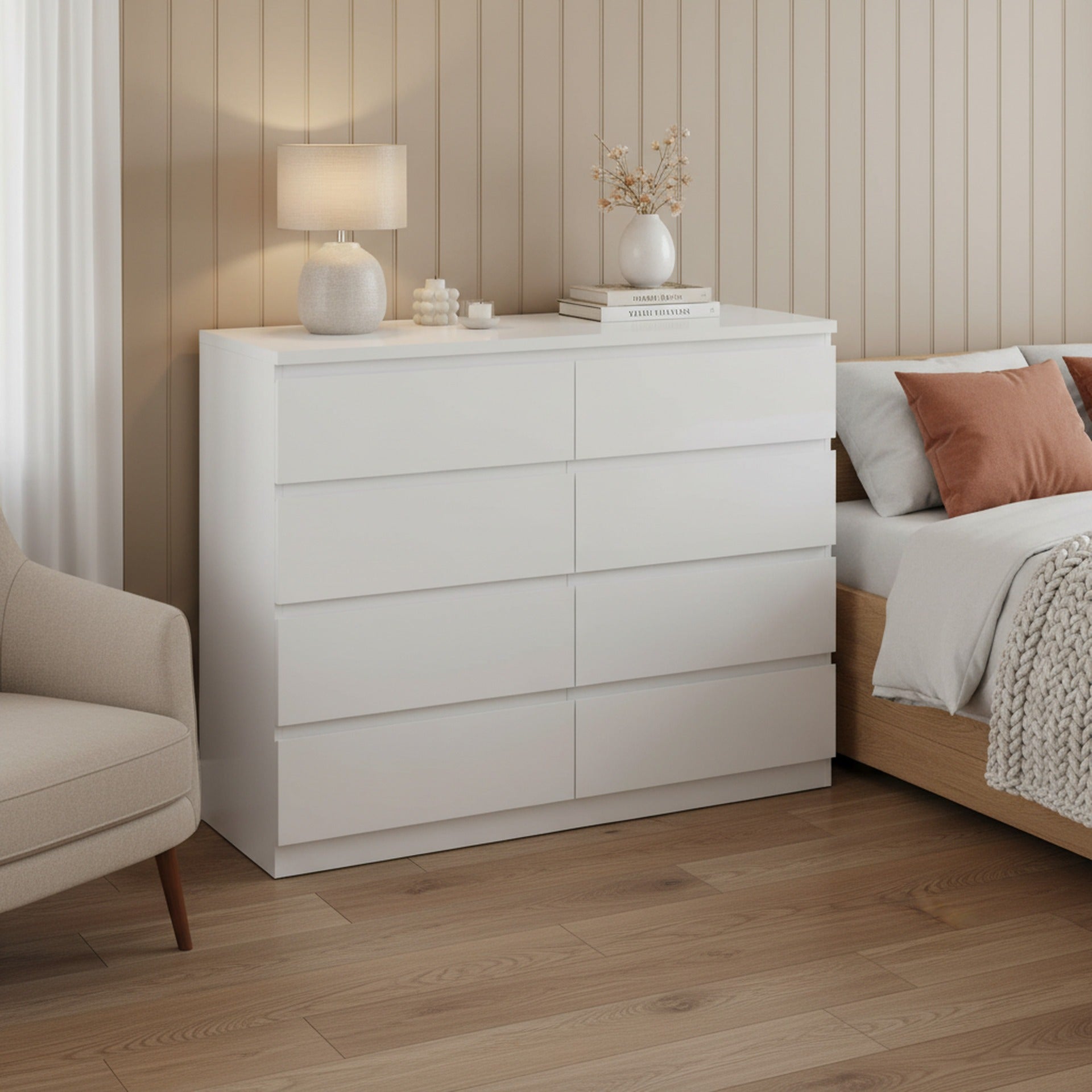 - 100% Brand New TONGASS Wooden Low Boy 8 Drawers - WHITE