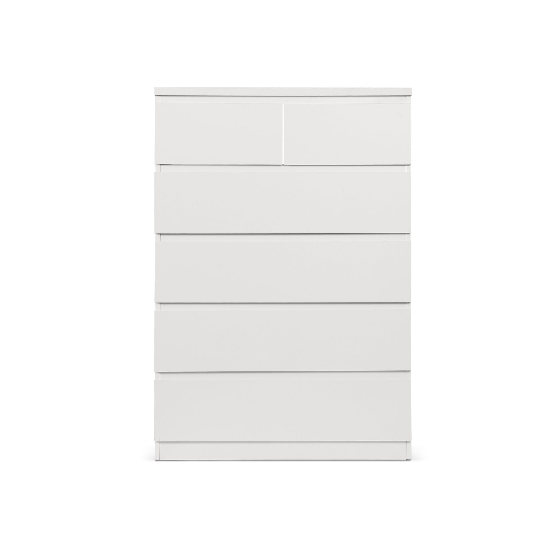 Featuring the TONGASS 6 Drawers Tallboy, this piece exemplifies simplicity and functionality. Made from durable MDF, it promises longevity. Six spacious drawers provide extensive storage for clothing and personal items, keeping your space tidy and clutter-free. The design includes two smaller drawers at the top for additional organization, while the broad top surface is ideal for a lamp or decorative items.