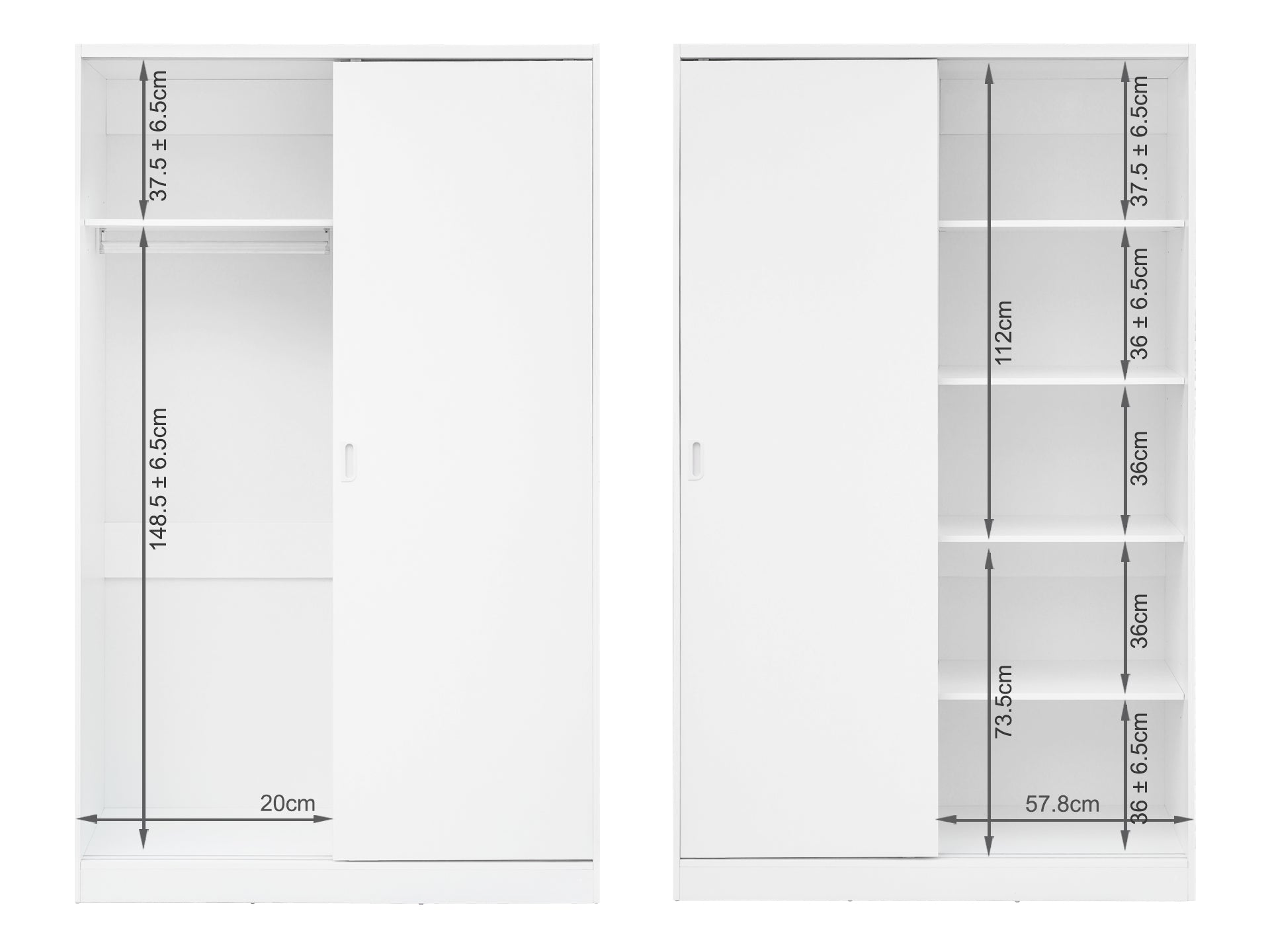 This wardrobe is designed with practicality in mind. It features sliding doors that allow easy access to your belongings without taking up additional space. Inside, there are multiple shelving units ideal for folded clothes, shoes, or accessories, alongside a hanging rod to keep your garments wrinkle-free. In addition, The sliding door design ensures efficient use of space in smaller rooms, making it a perfect fit for compact or larger bedrooms.