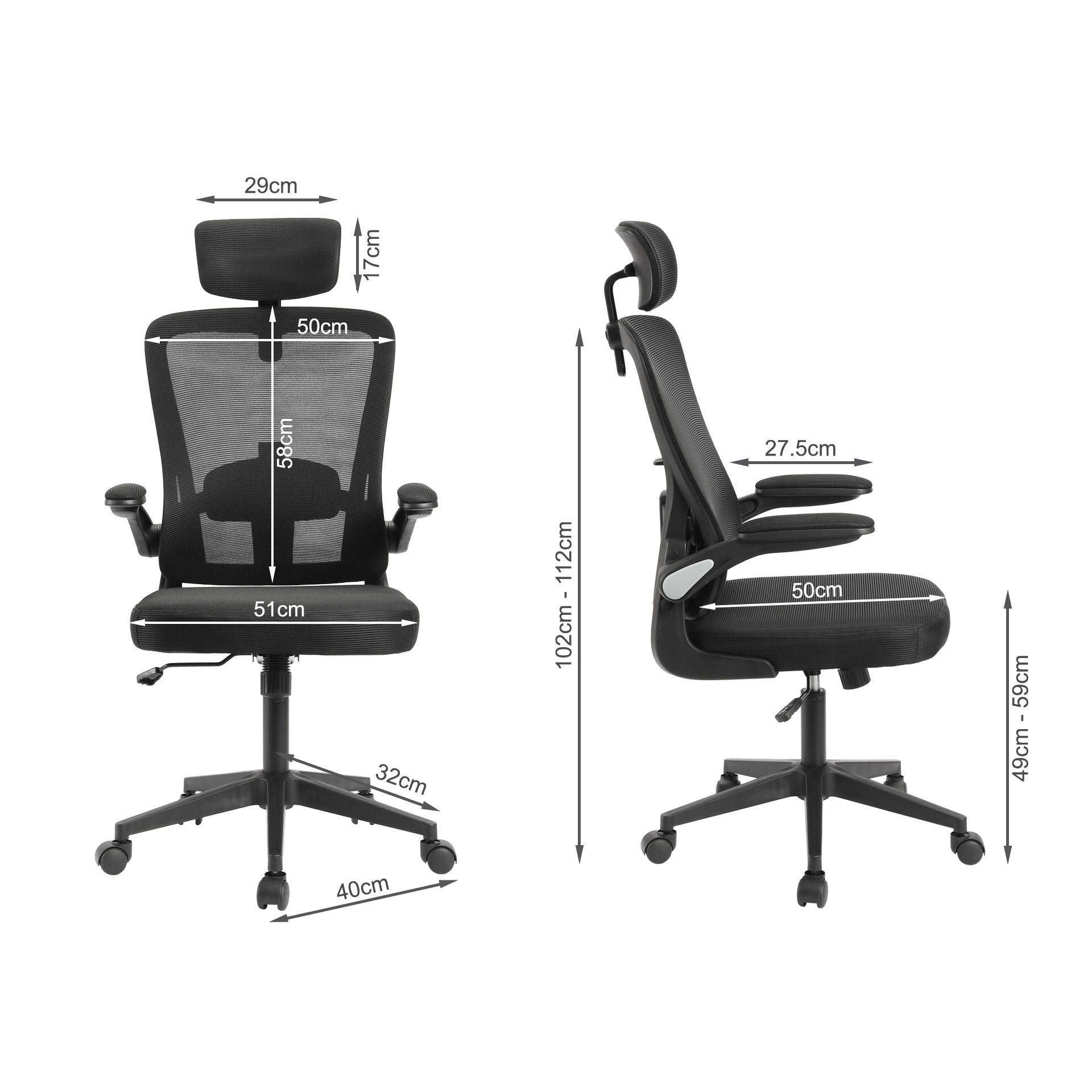 - Backrest Dimensions (W D): 50cm x 58cm