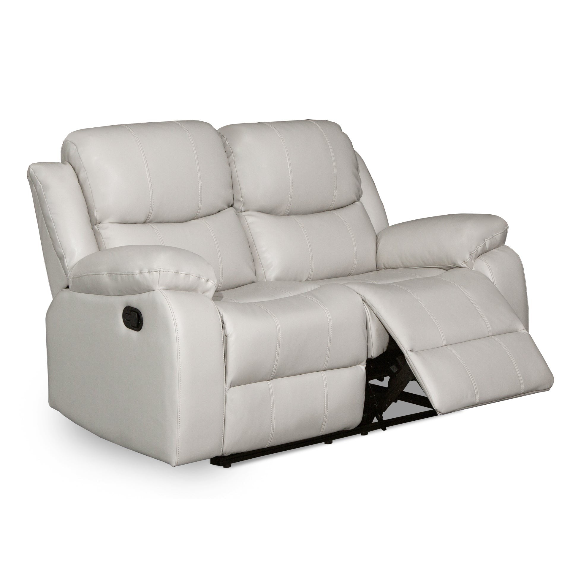 Crafted from high-quality and durable air leather, this reclining sofa is designed to elevate your lounging experience. With highly resilient foam padding, you can sink into the plush padded armrests and backrest, enveloped in layers of luxurious cushioning that provide exceptional support and unparalleled comfort. Built on a sturdy solid wood and plywood frame and metal base, the recliner sofa ensures stability and durability.