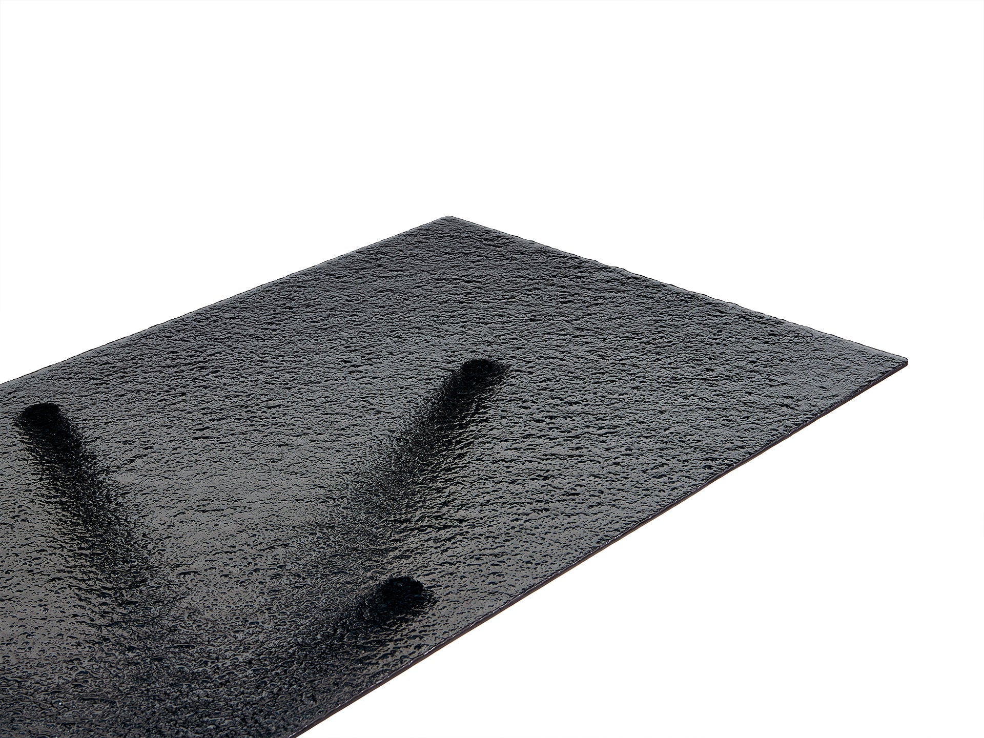 - Elegant black fused glass tabletop with textured surface